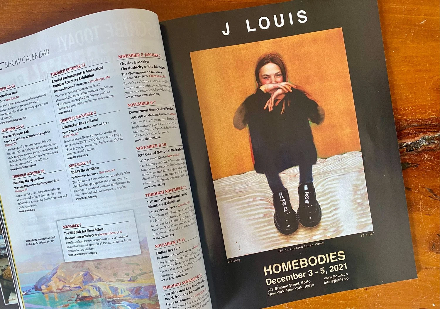 J Louis paints portraits in a gestural style he describes as “Dynamic Impressionist.” His oil-on-linen paintings blend figuration and abstraction, portraying his subjects in relaxed poses amid textured planes of earthy colors. Interested in the materiality of paint, the artist frequently builds up layers on his canvas only to scrape pigment away to create uneven surfaces. Louis captures the essence of his sitters in his atmospheric portraits, revealing their quiet strength as well as their physical beauty. Visit J Louis’ site